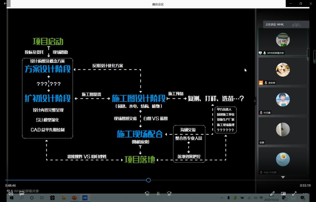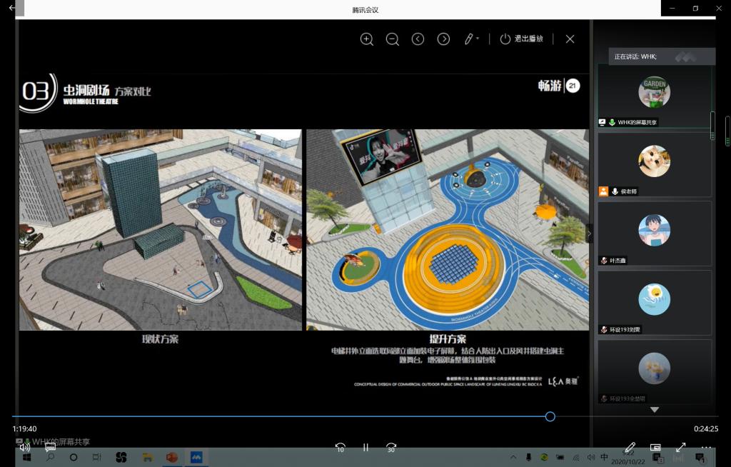 课程的第二个环节,由奥雅设计青岛分公司高级设计师魏洪凯为同学们做精彩的专业分享。魏洪凯是我校2009级同学,时隔十多年,他与学弟学妹们共聚《设计原理》的在线课堂,通过对园林规划设计流程的讲解以及两个优秀设计的案例的分享,带来了环境设计专业最前沿的设计理念和设计动态。本次分享的两个案例一个是青岛台柳路1907商街景观设计,一个是鲁能领秀商业室外公共空间景观设计,这两个项目都是现在热度比较高的城市商业空间景观更新项目。通过魏洪凯的案例分享,让同学们对课堂理论知识有了进一步的认识,使书本上的知识更接地气了。