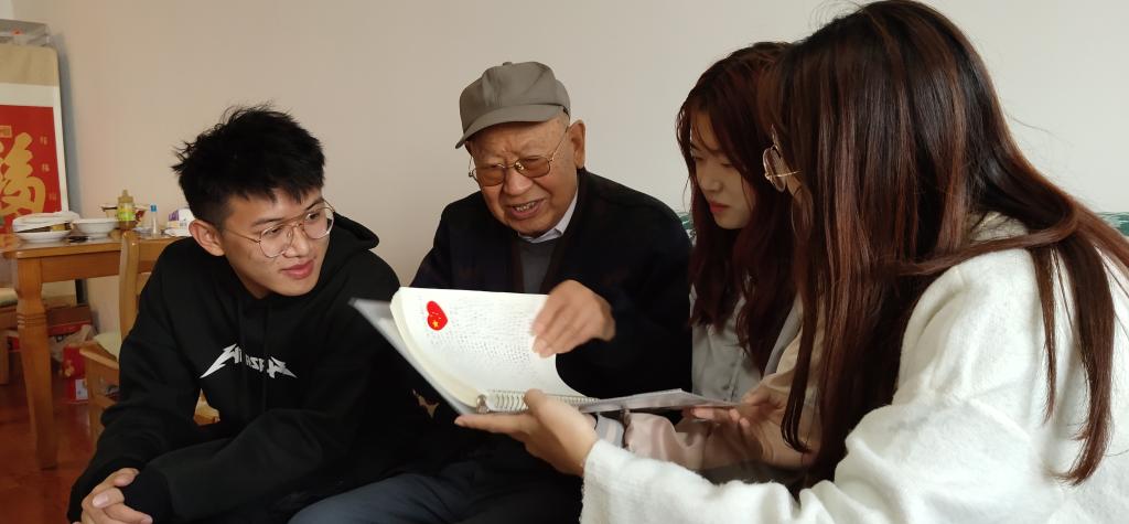 学生代表与抗美援朝战士、我校离休干部申中甫老同志合影留念