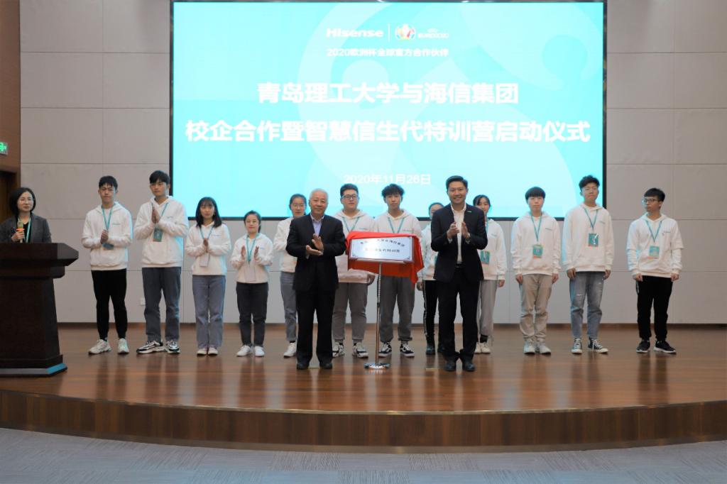 座谈会上,鲍一代表海信集团对赵铁军一行表示热烈欢迎,介绍了海信集团历史沿革、产业布局等发展情况。双方共同探讨了未来校企双方进一步深度合作的模式,促进新形势下持续发挥各自优势,合作共赢。启动仪式上,双方领导为首批经层层选拔的学员深情寄语,并共同为“智慧信生代特训营”揭牌。