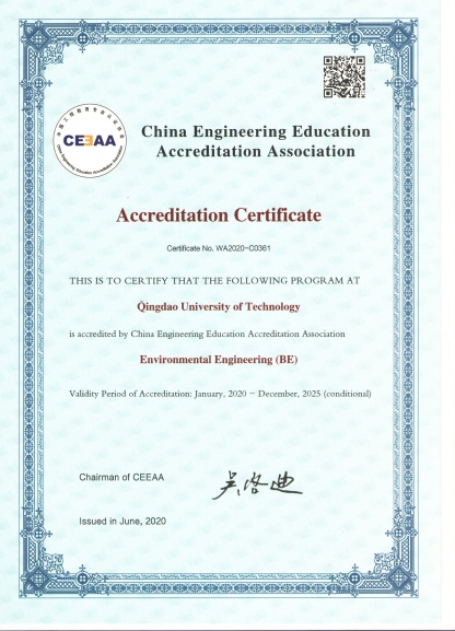 近日,教育部高等教育教学评估中心联合中国工程教育专业认证协会为我校环境与市政工程学院环境工程本科专业颁发中国工程教育认证证书,表明我校环境工程本科专业通过中国工程教育认证,纳入《华盛顿协议》国际互认名单,标志着该专业进入全球工程教育的“第一方阵”。也是专业入选首批国家级一流本科专业建设点、山东省一流学科(培育)以来建设成效的具体体现,将有力发挥示范辐射作用。
