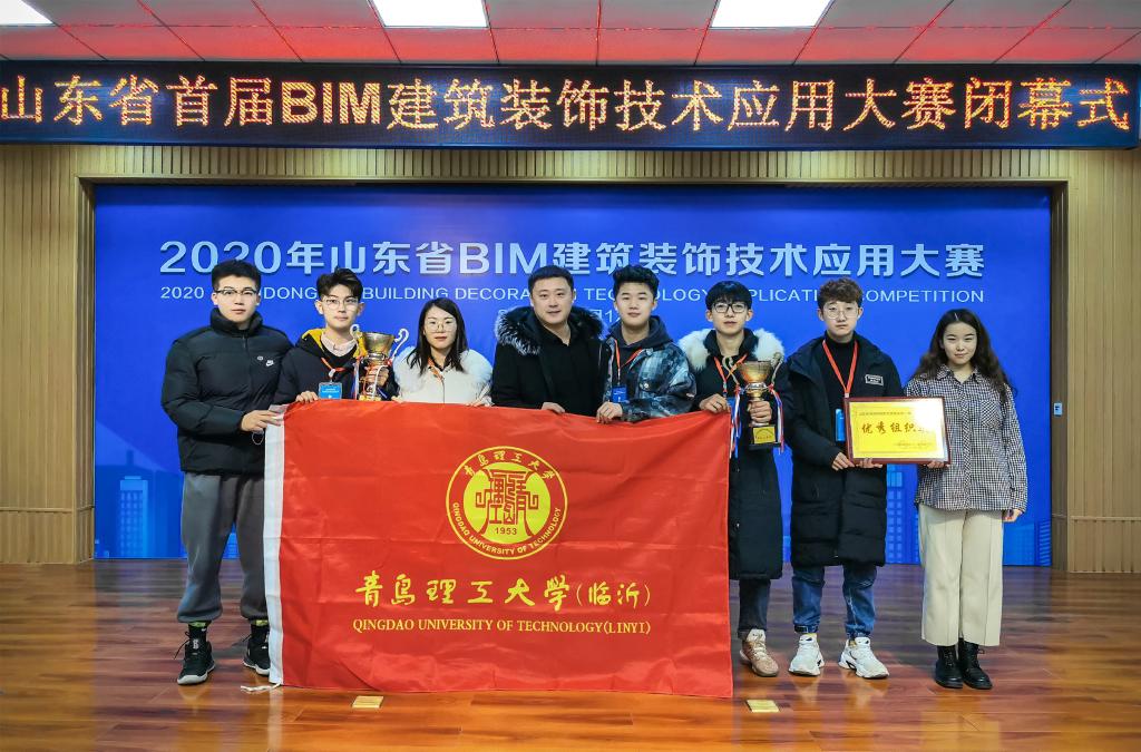 本次比赛由山东省建设科技与教育协会、山东省勘探设计协会主办,大赛从BIM建模、设计及VR表现、装饰工程成本管控、装饰工程施工图深化设计4个方面进行,通过比赛全面考察学生的专业知识、BIM技术、VR技术应用能力、团队组织、协作能力和学生的三维认知、设计创新能力,有助于提升对装饰工程项目全过程的学习效果。经过激烈角逐,由王轲、张利华指导的第一代表队(队员:赵志毅、陈学森、胡梦雪)获得大赛团体一等奖,由李云、江一指导的第二代表队(队员:程兴琥、牟浩洋、郭令旗)获得大赛团体二等奖,校区获得优秀组织奖。