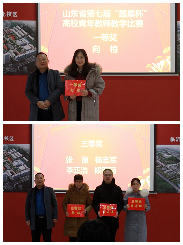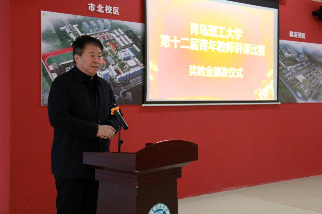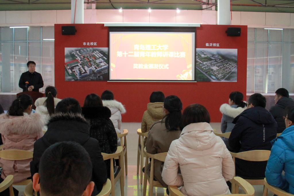 仪式上,范学工宣读了《青岛理工大学第十二届中青年教师讲课比赛》和《山东省第七届“超星杯”高校青年教师教学比赛》获奖名单,全恩伟为10名获奖老师颁发奖金6.7万元。学校讲课比赛二等奖、省第七届高校教师教学比赛一等奖获得者向根代表获奖教师发言。