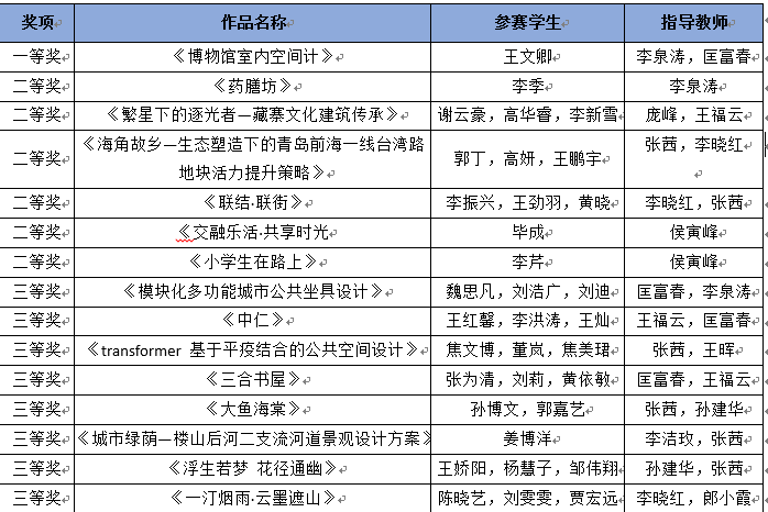 近日,由山东省科学技术协会、山东省教育厅、共青团山东省委、山东省发展和改革委员会、山东省工业和信息化厅、山东省人力资源和社会保障厅联合举办的首届山东省大学生环境艺术创新创意设计大赛成功举行。经过紧张激烈的角逐和严格的专家评审,我校艺术与设计学院环境设计专业学子在大赛中获得优异成绩,共获得省级一等奖1项,二等奖6项,三等奖8项,获奖数量和质量位居山东省高校前列。
