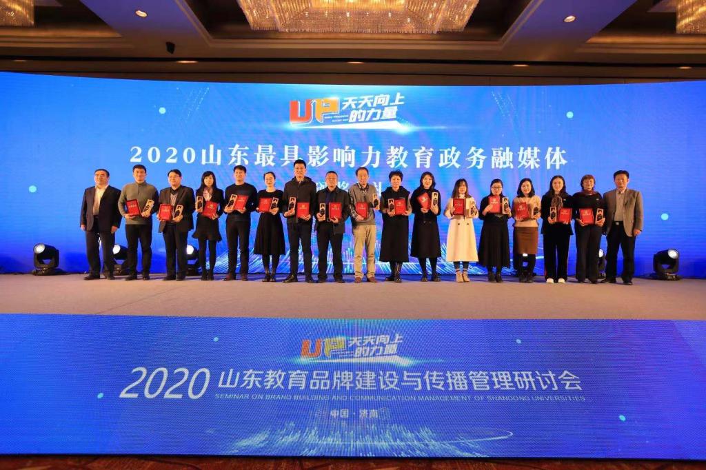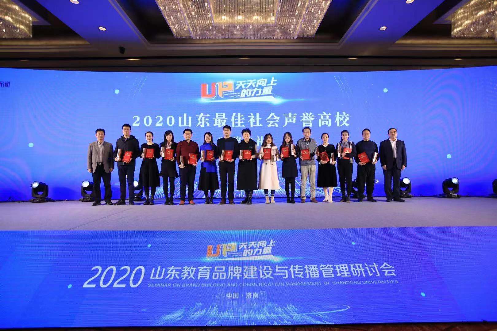 12月25日,由山东省互联网传媒集团主办的2020山东教育品牌建设与传播管理研讨会在济南召开。我校荣获“2020山东最佳社会声誉高校”(本科院校-精进奖)和“2020山东最具影响力教育政务融媒体”(本科高校)。韩小燕、任衍珍获评“2020山东教育领域优质融媒体内容创作人”称号。