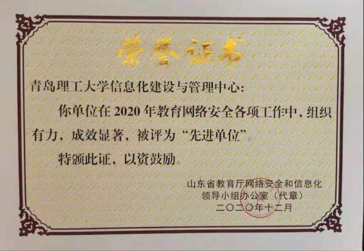 12月16日下午,省教育厅组织召开全省教育系统网络安全工作推进视频会议,我校在2020年教育网络安全各项工作中,组织有力,成效显著,被评为“先进单位”。