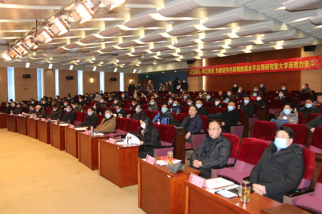 1月6日,学校在市北校区报告厅召开了2020年度二级单位目标管理考核述职汇报会。校党委书记王亚军,党委副书记、校长谭秀森等校领导班子成员,各二级单位负责同志和师生代表共100余人参加了会议。会议由党委常委、副校长齐德义主持。
