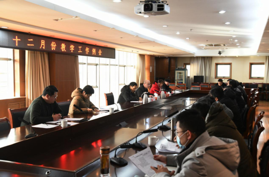 1月12日下午,学校在市北校区1908会议室召开12月份教学工作例会。会议由副校长王在泉主持,各院(部)教学院长(主任)、教务处部分处科级干部参会。