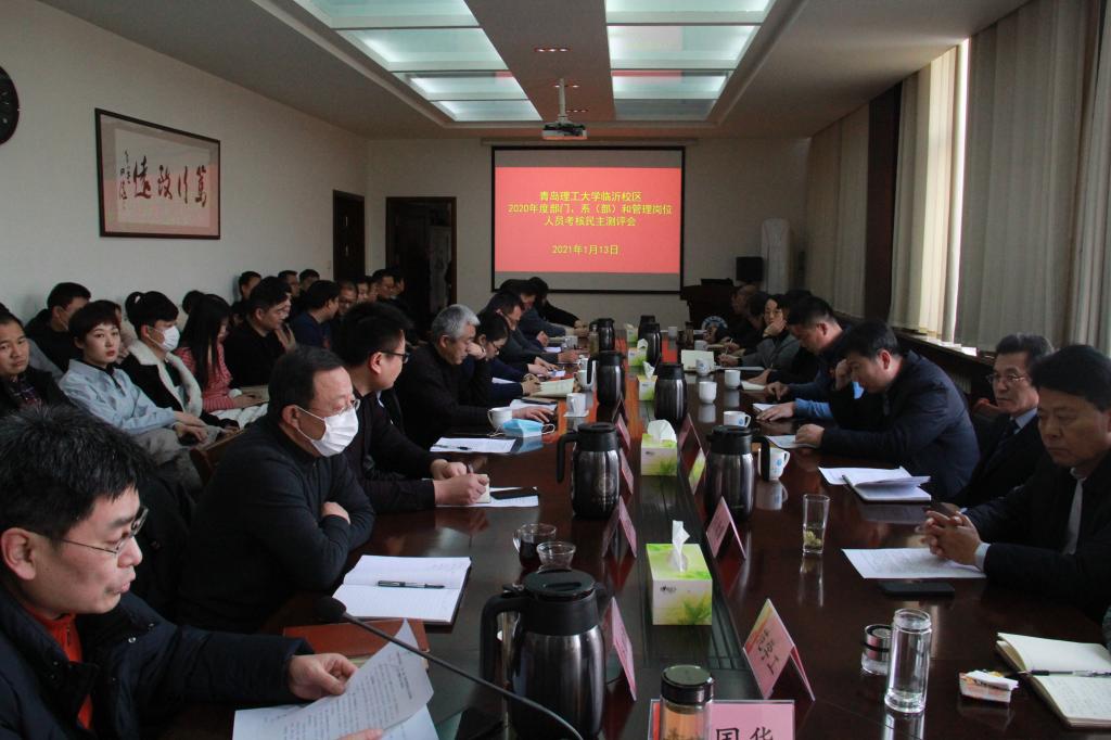 1月13日,临沂校区在办公楼202会议室召开2020年度二级单位目标管理考核述职汇报会。学校党委副书记、临沂校区党委书记李国华出席会议并讲话,校区党委常务副书记李国涛主持会议,校区领导班子成员、各二级单位负责同志和教师代表共60余人参加会议。