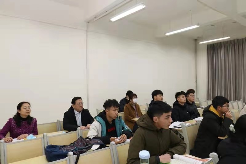随后,王亚军、谭秀森等校领导深入课堂与同学们一同听课。课堂上,任课老师备课充分,讲授内容丰富生动,学生互动积极,课堂气氛活跃,教学效果良好。在与任课老师课间交流时,王亚军、谭秀森指出,学校开设的每一门课程都有其特定的意义和作用,任课教师一定要讲好课程内容,同时重视挖掘专业知识中的育人要素,使其在学生成长成才过程中发挥出最大效能。