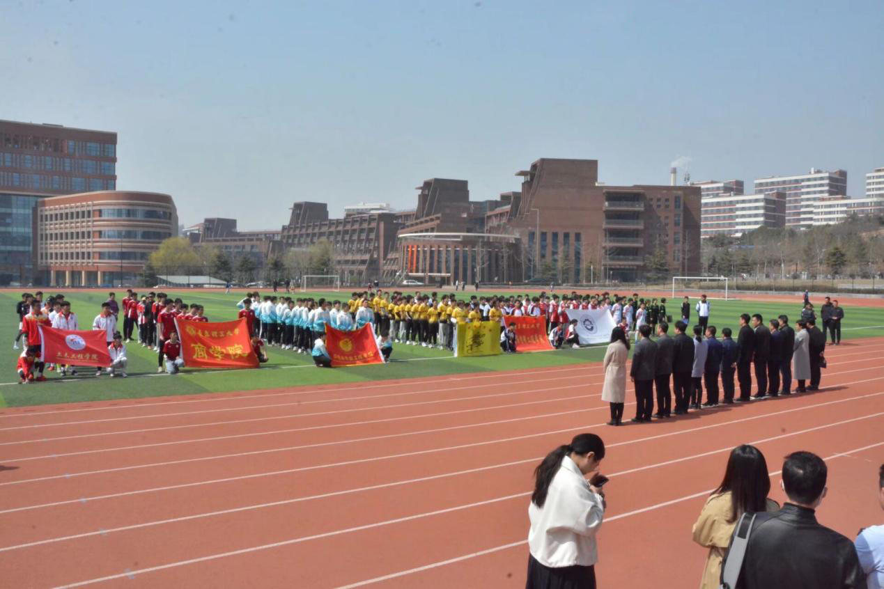 3月24日中午,青岛理工大学2021年学生足球联赛暨第12届体育文化节开幕式,在嘉陵江路校区东田径运动场举行。校团委书记高洁、学生处副处长鞠志强、体育教学部书记张建新、主任王龙以及各学院学生工作负责人等参加了开幕式。