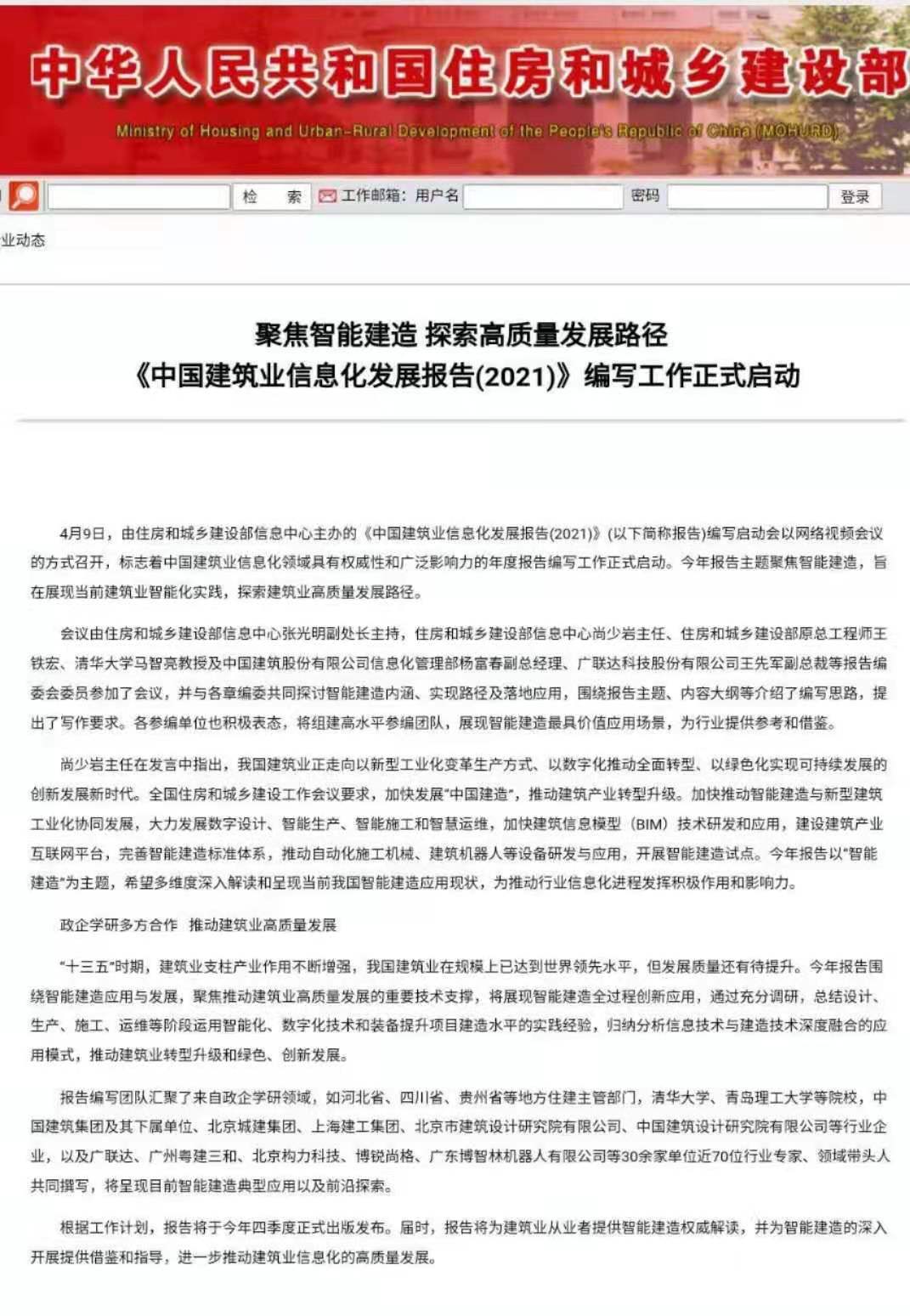 据悉,本次报告编写工作邀请到了清华大学、同济大学、青岛理工大学三所高校在内的各专业单位负责。2021年《中国建筑业信息化发展报告》选题为“智能建造应用与发展”,报告将聚焦智能建造全过程,通过充分调研,总结设计、生产、施工、运维阶段及装备等的智能化实践经验,归纳分析工程建设过程中基于信息技术与建造技术深度融合的应用模式,推动智能建造深入应用,促进建筑业转型升级和绿色创新发展。