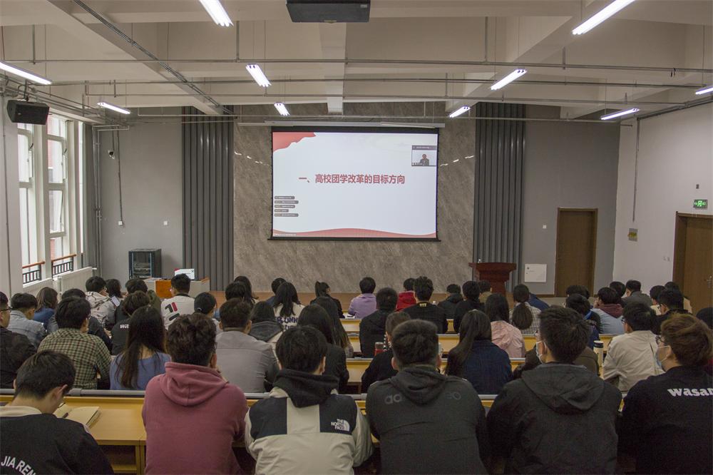 会后,全体学团干部线上参加了团中央基层建设部、全国学联秘书处举办的高校共青团专题培训班,聆听团中央基层建设部、全国学联秘书处柏贞尧做题为《聚焦主责主业,持续深化改革,不断加强和改进高校团学工作》的专题报告,使全体团干部对高校共青团改革、学生会改革及学生社团建设管理有了更加深入的了解,为科学规范开展团学组织改革提供了指导和遵循。会上,团委书记高洁号召广大团学组织、广大团学干部要将党史学习教育与解决实际问题相结合,与改进工作作风相结合,始终坚持全心全意为同学服务的宗旨,将党史学习教育转化为“我为同学办实事”的实践,了解学生所需所盼,做到学生有需求,团学组织有行动,切实解决学生学习和生活中存在的问题,持续增强团学组织的服务力和公信力,不断提升学生的获得感和幸福感,努力推动党史学习教育见实见效。(撰稿:曲乐,摄影:孙川,审核:苏伟)