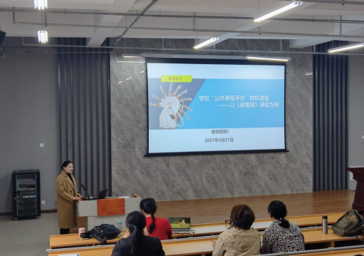 李伟老师就评估的四个理念、课程评估“课程定位与目标”“课程目标实现过程”“课程目标达成度评价”三大要点和一个特色项目加分项,谈了自己的体会,并结合“健美操”课程详细展示了课程自评表及支撑材料的准备。