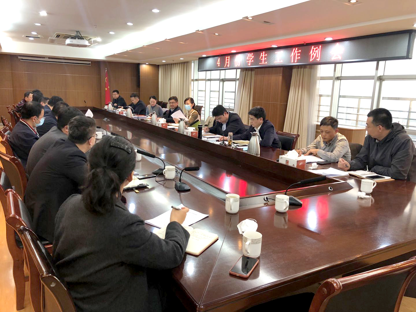 4月28日,学校4月份学生工作例会在市北校区1908会议室召开,党委常委、副校长沈文青出席会议并讲话,学生工作处、临沂校区、团委、研究生处等部门主要负责人,各学院党委(总支)副书记参加会议。会议由学生工作处处长焦红良主持。