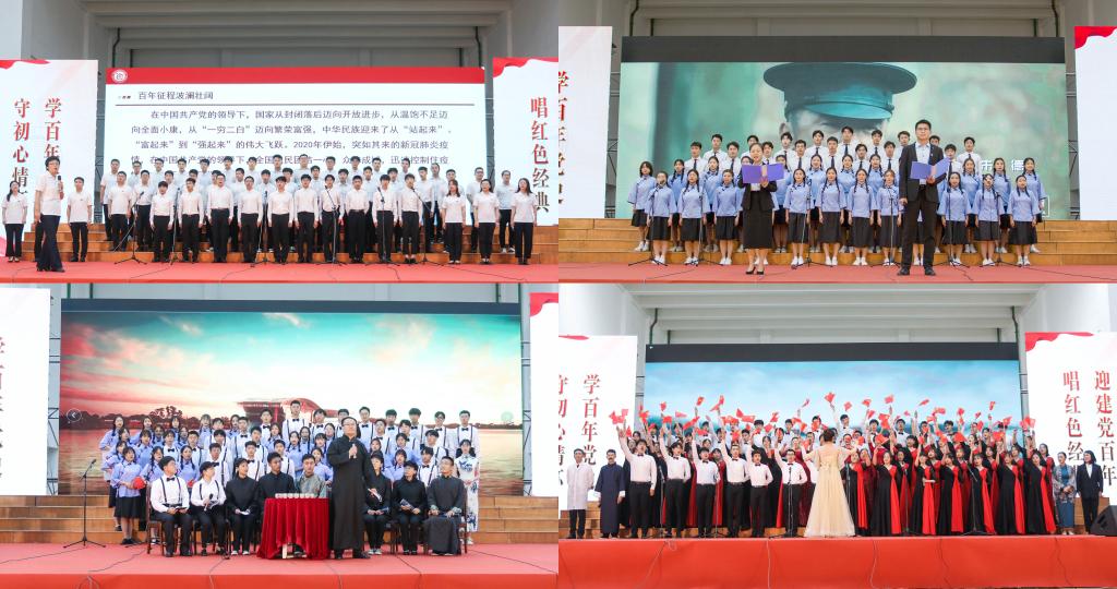“万水千山不忘来时路,鲜血浇灌出花开的国度”、“唱支山歌给党听,我把党来比母亲”……6月9日下午,“颂歌献给党”庆祝中国共产党成立100周年师生大合唱比赛上,学校师生们用一首首节奏鲜明、耳熟能详的经典红歌诉说着对中国共产党的深深祝福,为大家呈现了一场生动的党史思政大课。