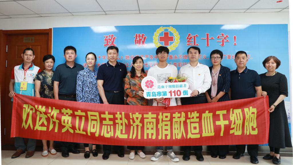 6月29日下午,青岛市第110例造血干细胞捐献者、我校信息与控制工程学院许英立同学赴济南捐献欢送仪式在西海岸新区红十字会举行。党委常委、副校长沈文青,西海岸新区工委常委、统战部长尹来成,青岛市红十字会副会长韩黎宾出席仪式并讲话,校团委、信息与控制工程学院负责同志参加欢送仪式。
