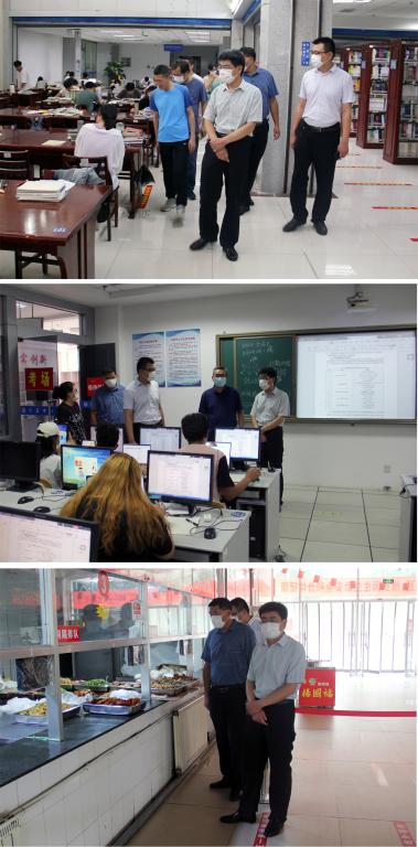 会后,校区党委副书记李国涛带领校区党政办公室、教学科研部、后勤基建部、保卫部等部门负责人到图书馆、机房、学生餐厅等地实地检查督导疫情防控工作,详细了解各单位疫情防控措施落实情况,要求统一思想,细化措施,严格按照疫情防控专题会议部署要求把工作做实做细做到位,切实保障师生的生命健康安全。(撰稿:陈丽华,审核:李国涛)