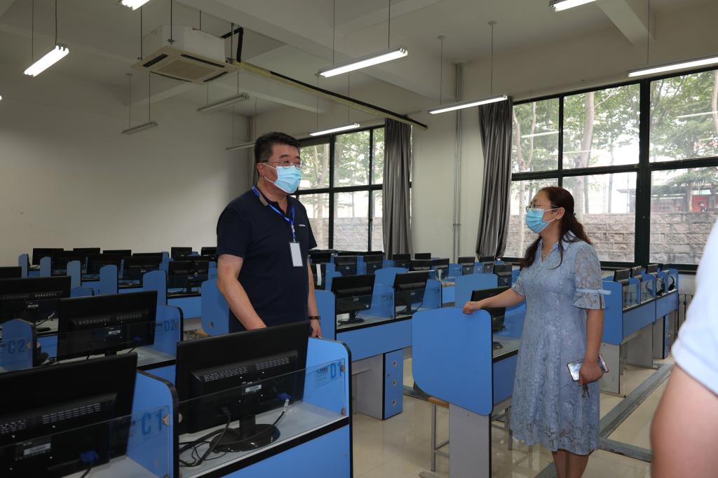 在教学楼,谭秀森一行详细检查了学院日常管理及各专业教室管理情况。谭秀森指出,各相关部门要积极与学院沟通交流,根据专业类型与需求配置教室资源。同时,要加强对学生的劳动教育、安全教育,共同创造温馨、舒适、整洁的学习环境。