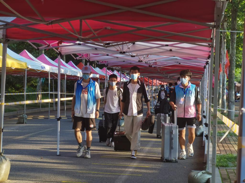 报到现场,新生通过“学生返校专用通道”,经体温检测、行李消杀、查验健康码和48小时内核酸阴性证明、扫描“青理一码通”信息,再进行二次核酸检验,整个过程流畅、有序。