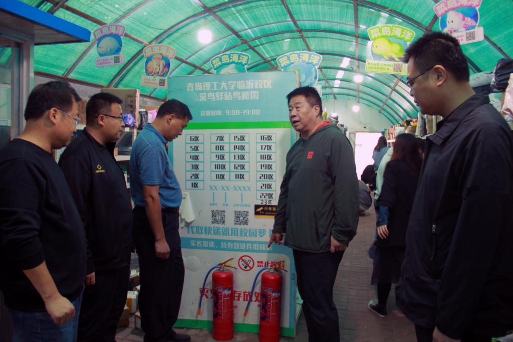 在各单位安全自查的基础上,检查组深入临沂校区南门口、学生餐厅、超市、菜鸟驿站等地,对照全省校园安全隐患大排查大整治行动第五轮专项督导组反馈意见,重点检查校园出入口安防设施建设、餐厅食品卫生、用火用电用气管理、食品留样、消防设施和器材管理、消防安全教育培训、超市物料储备间设置及快递网点布局等关键区域、领域,切实做到不留死角、全面覆盖,对发现的问题提出整改意见,要求相关单位迅速落实整改,坚决消除隐患,确保师生安全。