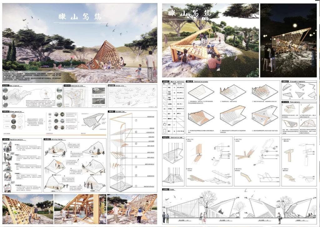 本届大赛自今年4月份拉开帷幕,以“致敬齐长城,发展齐文化”为竞赛主题,以方案竞图结合实体建造为竞赛形式,结合乡村旅游开展需要,弘扬工匠精神、开发齐品特色,以齐长城脚下的文旅型乡村为研究对象,开展乡村公共空间活化及服务性景观小品设计与建造。在本届大赛中,我校三个作品《齐·生长》、《瞰山写筑》、《古道·齐风》三支队伍经过大赛前期层层选拔,在国内外37所高校学子的236份作品中脱颖而出,成功晋级最终7组决赛搭建圈进行现场搭建并获奖。