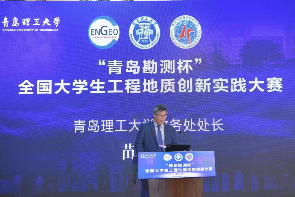 2021年10月15日,“青岛勘测杯”全国大学生工程地质创新实践大赛在青岛市红岛国际会议中心成功举办。中国地质学会工程地质专业委员会主任委员唐辉明,青岛理工大学副校长王在泉,青岛市勘察测绘研究院院长张志华,以及工程地质学会专业委员会副主任委员和委员们出席了大赛开幕式,会议由青岛理工大学教务处处长苗吉军主持。