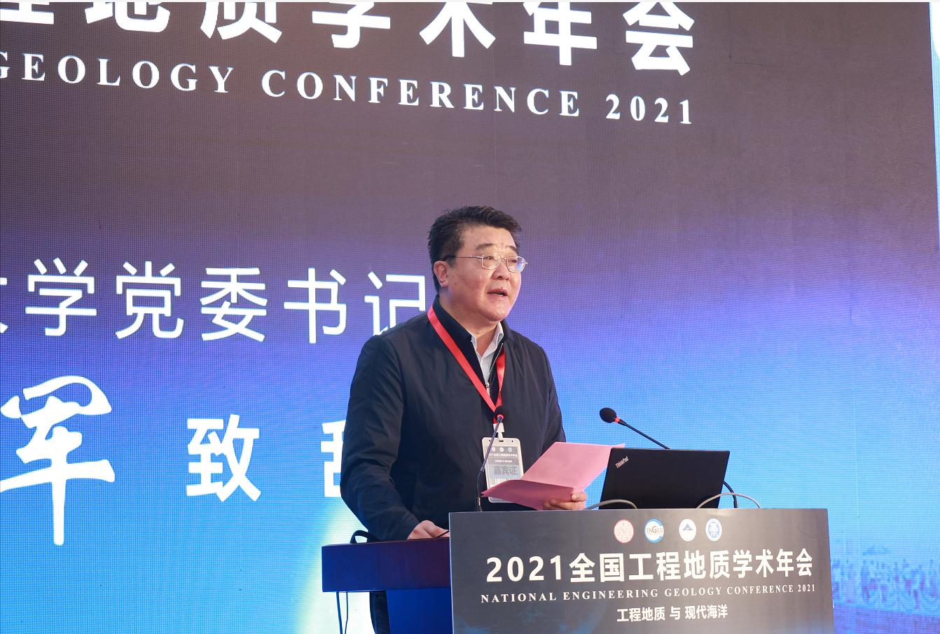 我校党委书记王亚军代表学校致欢迎辞,对各位来宾的到来表示热烈欢迎和衷心的感谢。王亚军介绍了学校的发展历程并指出,青岛理工大学以习近平新时代中国特色社会主义思想为指导,把握新发展阶段、贯彻新发展理念、融入新发展格局,锚定学校第三次党代会确定的建设特色鲜明的高水平应用研究型大学目标,牢牢把握立德树人根本任务,认真履行为党育人、为国育才的崇高使命,统筹推进疫情防控和事业内涵式高质量发展,扎实推进“十大工程”建设,各项工作呈现良好发展态势。王亚军指出,学校高度重视工程地质学科发展,牵头建设了山东省地质环境与效应工程技术研究中心,承担了多项国家自然科学基金项目、国家攻关项目、国际合作项目等,取得了研究与应用的成效。青岛理工大学十分珍惜这次难得的交流和学习机会,愿与广大地质工作者们一道,紧跟时代步伐、聚焦科学前沿、努力突破瓶颈,在推动国民经济和社会发展方面做出贡献。