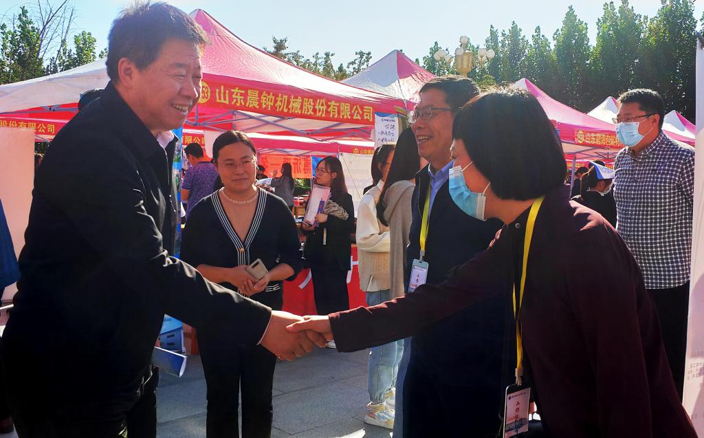 为贯彻落实学校与淄博市、临沂市战略合作框架协议内容,推动校区2022届毕业生就业创业工作再上新台阶,10月12日下午,由临沂市人力资源社会保障局、青岛理工大学临沂校区联合举办的“凤展沂蒙·乐业临沂”临沂名企入校联合招聘会暨青岛理工大学临沂校区2022届毕业生校园双选会在校区图书馆广场前举行,淄博高新区人力资源和社会保障中心“招才引智”项目应邀参加。本次双选会共有省内186家用人单位参会,提供就业岗位2367余个,涵盖机械制造、信息技术、互联网、生物制药等多个行业。临沂市人力资源开发服务管理办公室副主任苗培连,学校党委副书记、临沂校区党委书记李国华,临沂校区党委副书记李国涛及各系(部)负责人现场指导并与用人单位深入交流。