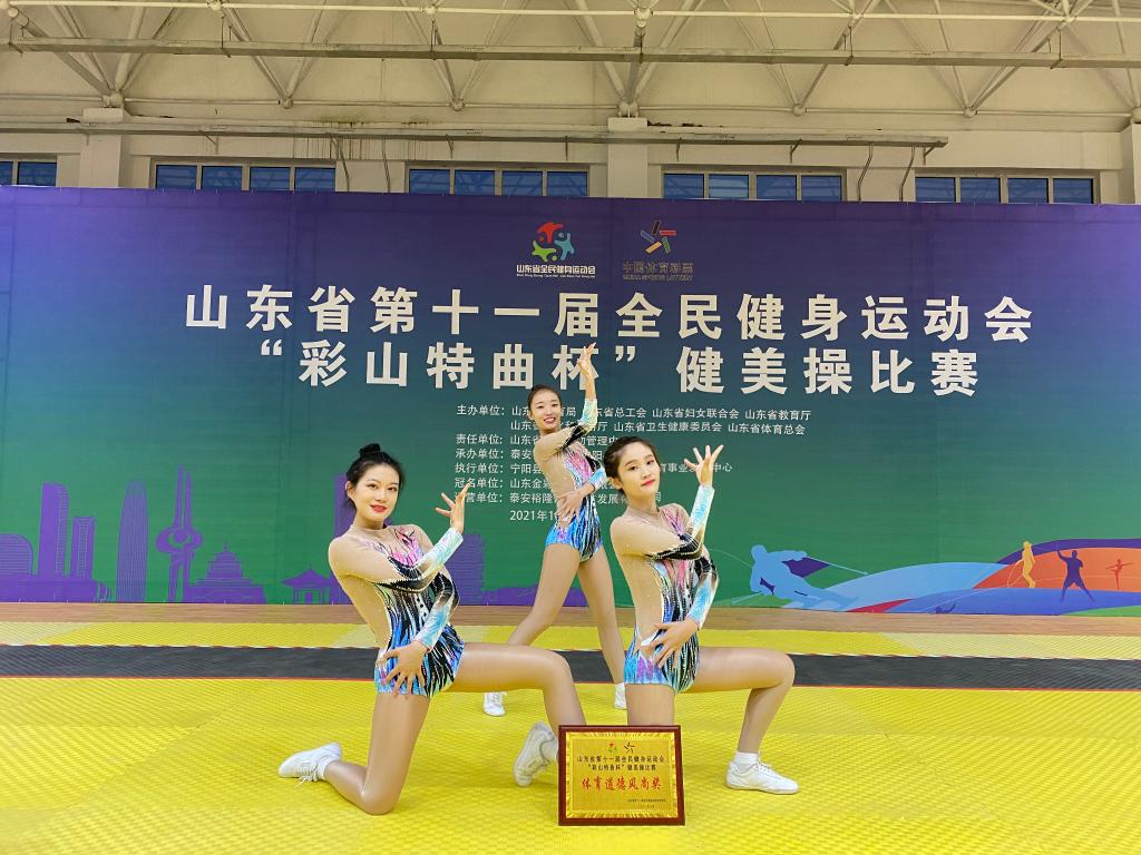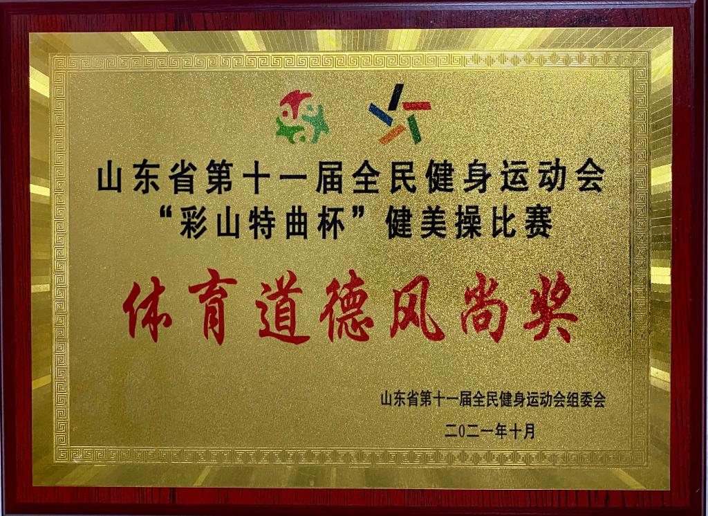 2021年10月23-24日,山东省第十一届全民健身运动会健美操比赛在泰安举行。我校啦啦操健美操队参加竞技健美操三人项目自选动作比赛,荣获一等奖,获评体育道德风尚奖,叶明亮老师获优秀裁判员荣誉称号。