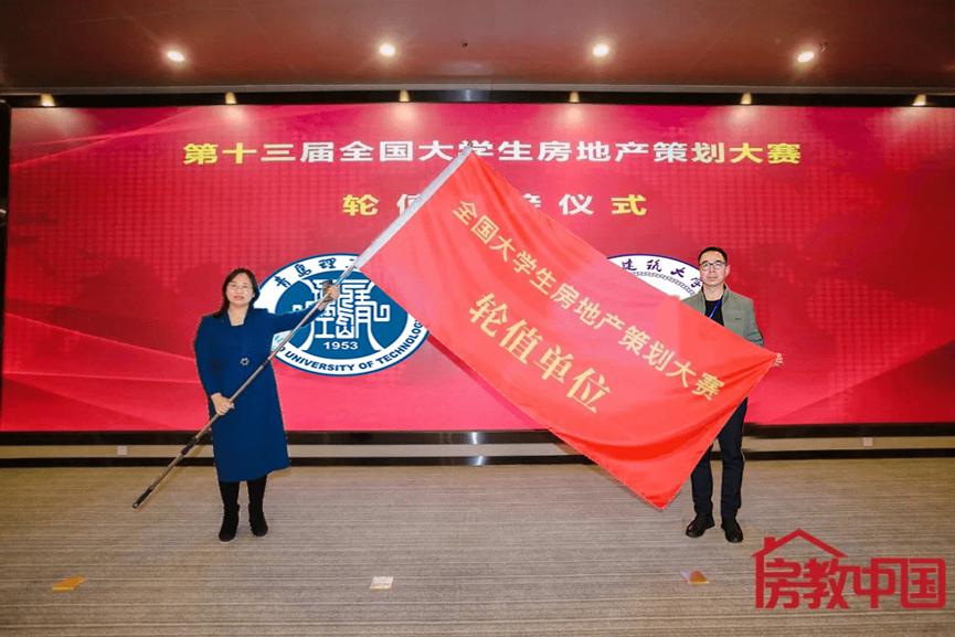闭幕式上,管理工程学院房地产专业郭平主任从北京建筑大学研究生院常务副院长周霞的手上接过大赛轮值大旗,大赛方宣布:2022年第十四届全国大学生房地产策划大赛总决赛由青岛理工大学承办!
