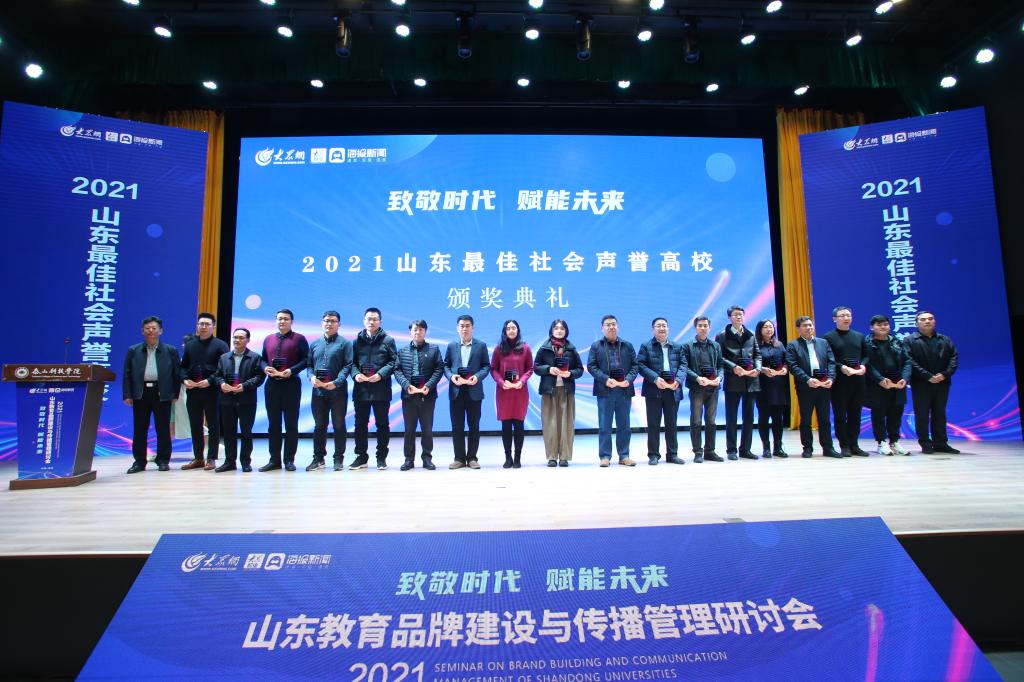 12月24日,山东教育品牌建设与传播管理研讨会在泰安举行,会上发布了“2021山东最佳社会声誉高校”和“2021最具影响力教育政务融媒体”奖两大榜单,我校分获2021山东最佳社会声誉高校和2021山东最具影响力教育政务融媒体。