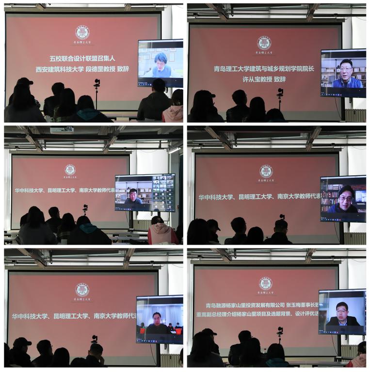 3月4日,由青岛理工大学建筑与城乡规划学院承办,华中科技大学建筑与城市规划学院、昆明理工大学建筑与城市规划学院、西安建筑科技大学建筑学院、南京大学建筑与城市规划学院参加的2022年“五校本科乡村联合毕业设计”线上开题仪式在学校市北校区滨海人居环境学术创新中心七楼举行。