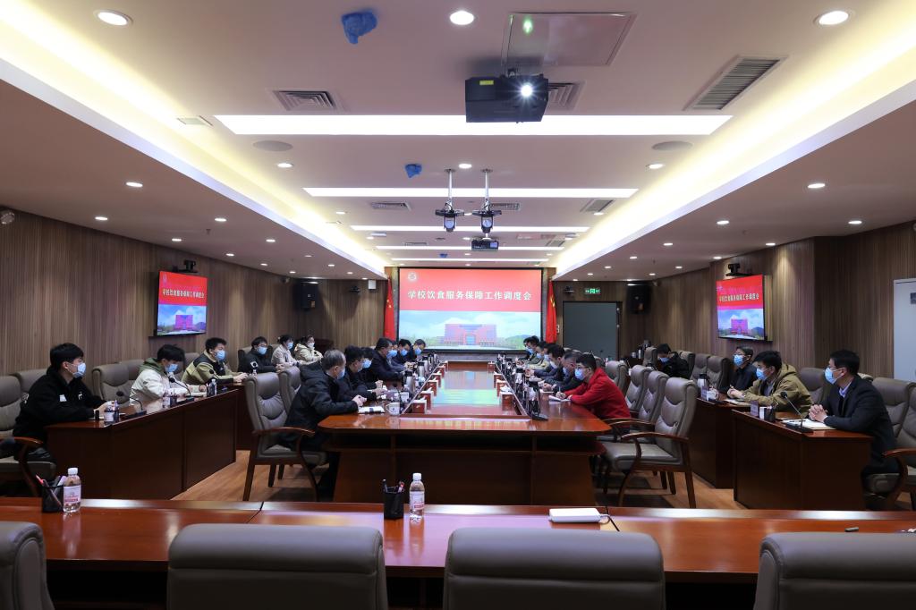 3月20日上午,学校召开饮食服务保障工作调度会。会议传达学习了上级疫情防控有关工作要求,听取了学生代表对学校餐饮服务的意见、建议,对从严从实抓好学校餐饮后勤保障服务、确保饮食服务平稳安全运行进行了工作调度。党委书记王亚军出席会议并讲话,党委常委、纪委书记、监察专员尹东峰,党委常委、副校长沈文青,党委常委、宣传部部长王维和学校后勤管理处、学生工作处、研究生处、团委等部门负责同志以及饮食服务中心负责人、各餐厅经营负责人和监管责任人,部分学生代表参加会议。