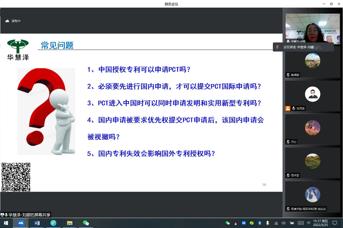 3月25日下午,科技处组织召开国外专利申请流程与技巧专项培训会,全校300余名师生参加。本次培训围绕高价值专利提升工程,以国外高价值专利申请快速提升的技巧为主题,针对国际专利申请的要点和难点,从申请途径选择、区别和程序性技巧,国际专利布局,申请文件的准备以及费用构成五部分进行了详细的讲解与培训,推动我校科技成果质量提高,助力学校科技成果转移转化。