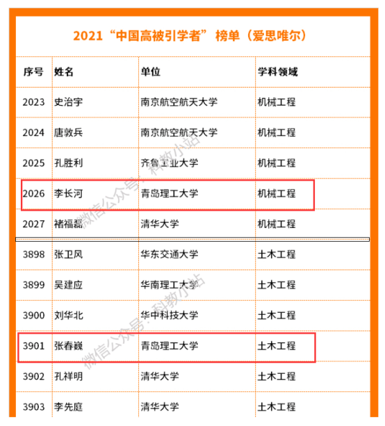 日前,全球信息分析公司爱思唯尔(Elsevier) 重磅发布2021“中国高被引学者” (Highly Cited Chinese Researchers)榜单。我校机械工程学科李长河教授和土木工程学科张春巍教授榜上有名,这也是我校首次有学者进入“中国高被引学者”榜单。