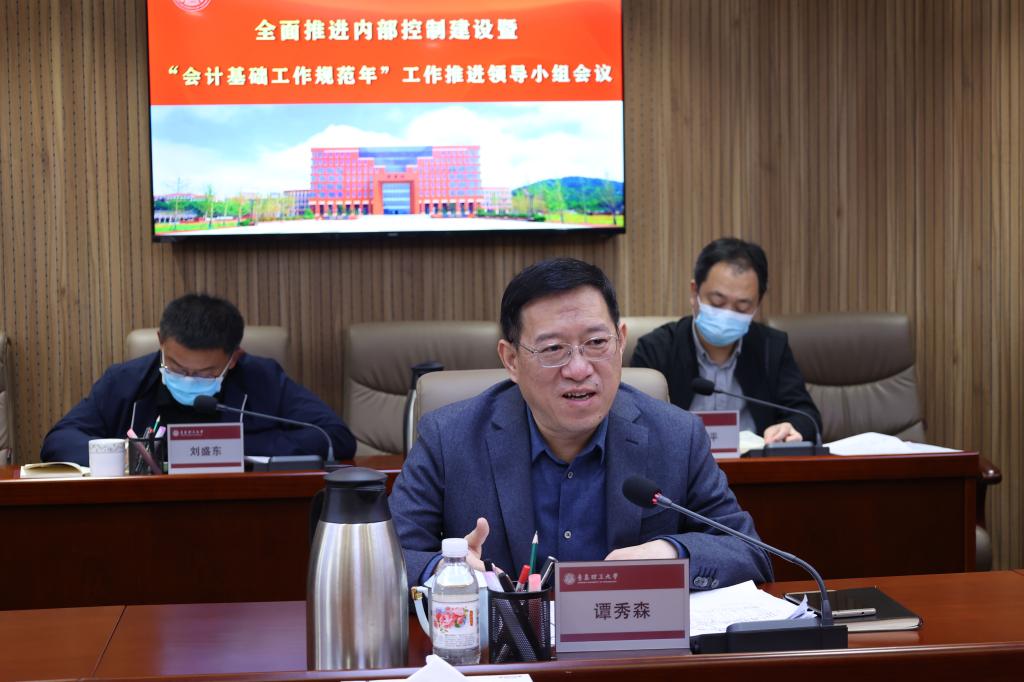5月10日,学校在嘉陵江路校区综合服务中心305会议室召开全面推进内部控制建设工作领导小组会暨“会计基础工作规范年”工作推进领导小组会,校全面推进内部控制建设工作领导小组组长、党委副书记、校长谭秀森主持会议并讲话,党委常委、纪委书记尹东峰,党委常委、副校长张凯、李长河,党委常委、组织部部长郭建锋,以及全体领导小组成员与有关负责人参加会议。