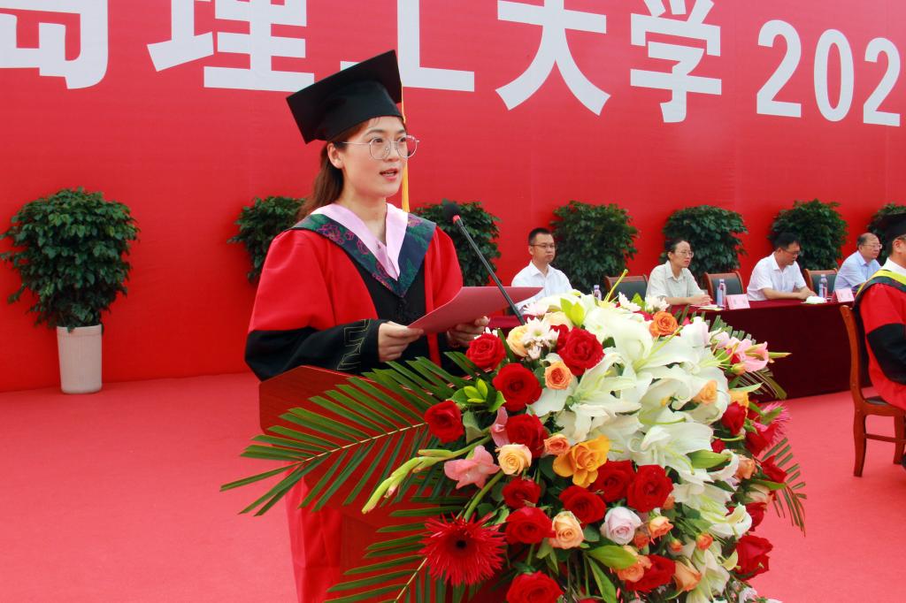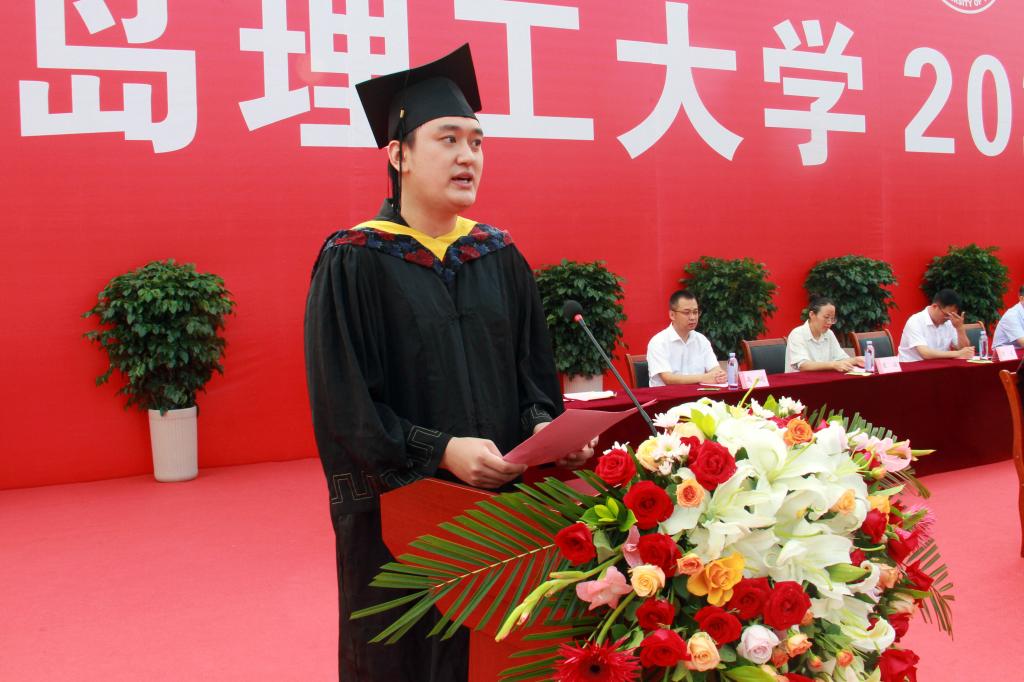 商学院刘奕彤、临沂校区土木与建筑工程系齐威铭同学作为毕业生代表发言。他们表示,大学四年,亲眼见证了全校师生以理工速度不断追赶超越的步伐,见证了母校的蓬勃发展。自己的奋斗目标和前行方向归结到一点,就是坚定不移听党话、跟党走,立志民族复兴,不负韶华、不负时代、不负人民,秉承“严谨、勤奋、求实、创新”的校训和“百折不挠、刚毅厚重、勇承重载”的理工精神,在平凡岗位上奋斗奉献,在基层一线磨砺成长,在急难险重任务中冲锋在前,在青春的赛道上奋力跑出当代青年的最好成绩!