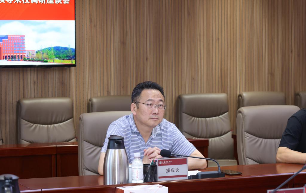 7月25日下午,中国石油大学(华东)党委常委、副校长操应长,带领人事处处长、党委教师工作部部长牛庆玮,国有资产管理处处长王浩浩,国家大学科技园办公室主任、青岛中石大科技教育集团有限公司党委书记、董事长陈勇一行4人来校调研座谈。校党委常委、副校长张凯主持座谈会,校党委常委、副校长李长河出席座谈会,人事处(教师工作部)、资产与实验室管理处、科技处等部门负责人参加座谈。