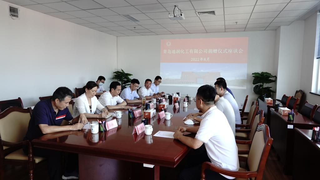 近日,青岛迪润化工有限公司捐赠仪式在我校嘉陵江路主校区综合服务中心1010会议室举行。捐赠仪式由党委常委、副校长齐德义主持。青岛迪润化工有限公司董事长邵先锋、总经理李明洋、副总经理张卫东、财务总监郭海滨及学校合作发展处鞠志强、体育教学部党委书记金建英、主任王龙、教师李旭龙博士参加捐赠仪式。