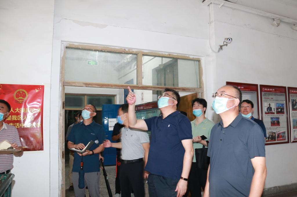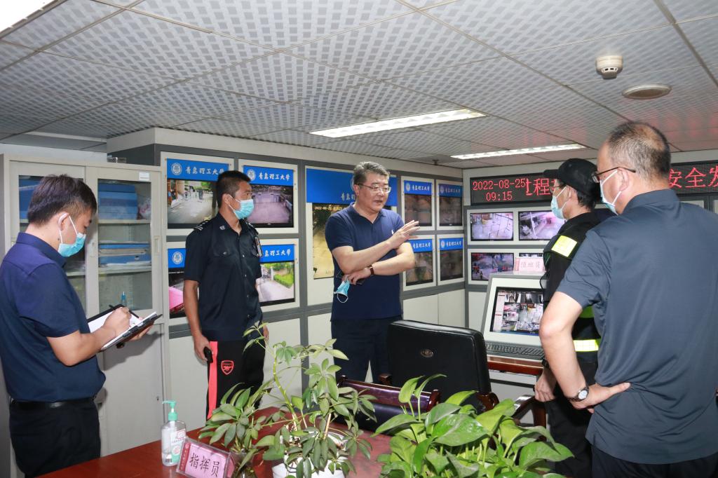 在西海岸新区主校区,谭秀森一行深入学校门岗、水泵房、换热站、变电站、实验室、危化品站、实训中心、学生公寓、校医院、学生餐厅、教学楼、图书馆等场所,重点检查了安全工作的规章制度和责任到位情况;听取了教学设施、居住条件、食品安全、卫生保健、校园环境等具体情况汇报和新学期工作安排;检查了校内水电、供暖等设施运行、准备情况,了解了多媒体教室运行情况,详细询问了校医院疫情防控处置流程。他强调,各部门要再接再厉,严格把控修缮项目实施质量和进度,不断提高管理服务水平,为学生提供更多便利条件。