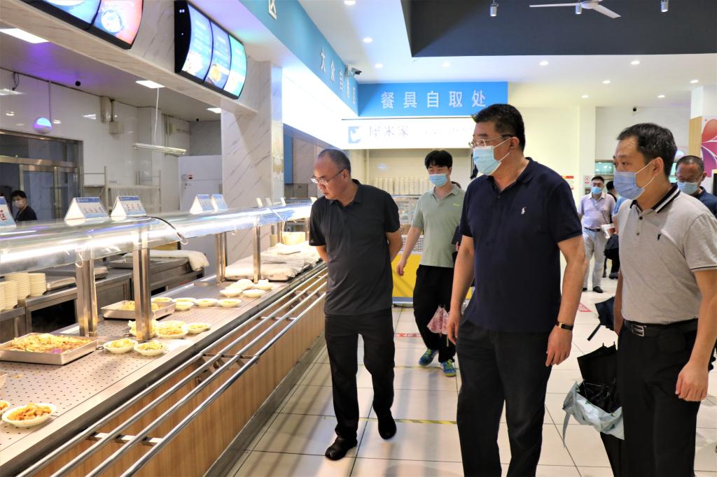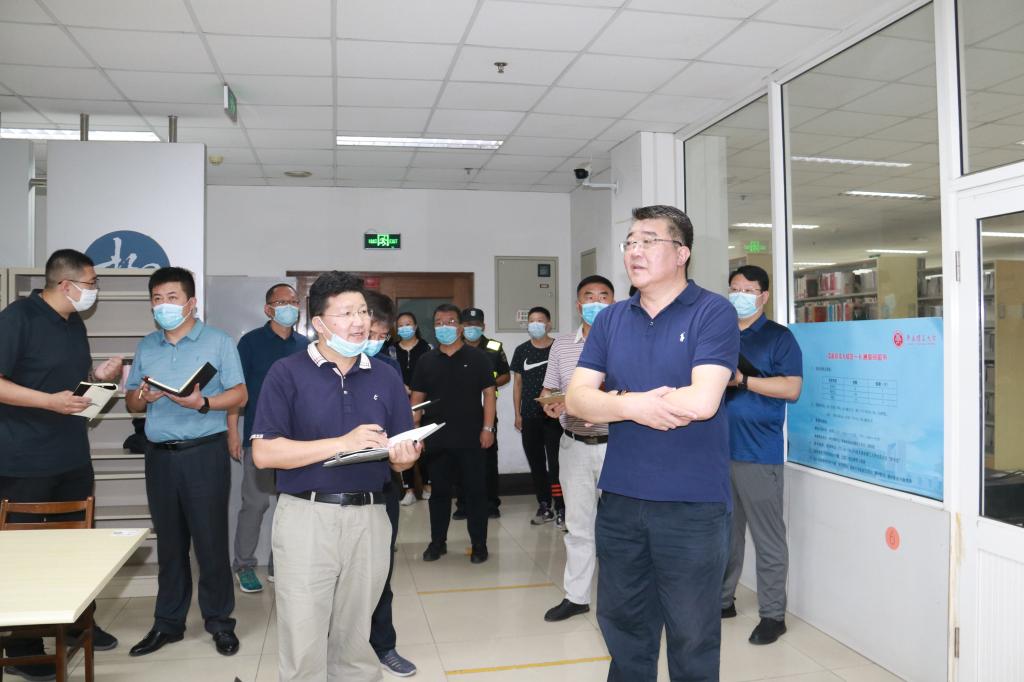 在市北校区,王亚军一行走访了各学院,详细了解教职工报到、学生返校注册准备及课程安排情况;实地检查教学楼、实验室等教学场所,查看教学设施及基础设施运行维护情况;走访了食堂、学生公寓,检查学生饮食、用水、用电等各项保障工作落实情况;了解图书馆开馆,校医院疫情防控处置、医疗服务保障及校园环境治理等情况。