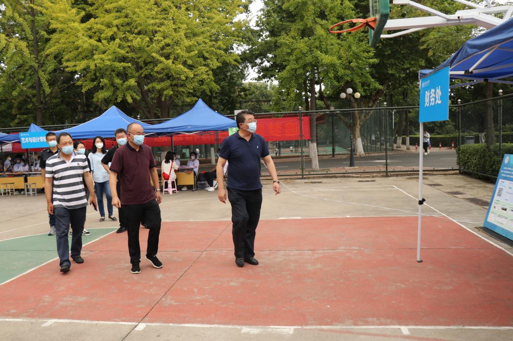 在市北校区迎新现场,王亚军一行走访新生报到点、学生公寓等地,认真检查迎新准备工作各个环节,了解新生报到进展情况,走访看望新生、志愿者和现场工作人员。学校各迎新环节设置合理,现场井然有序,工作人员热情周到,学生“扫码”进校,“刷脸”验证,实现无接触入校,整个流程快速、便捷,避免现场排“长龙”。