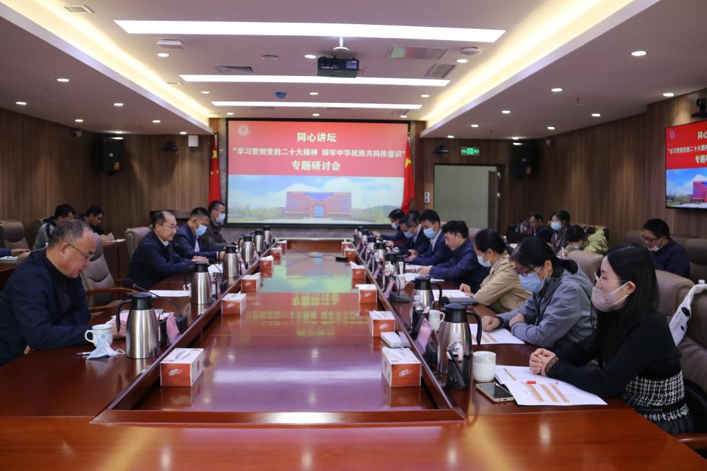 11月2日下午,我校举办“学习贯彻党的二十大精神 铸牢中华民族共同体意识”专题研讨会。