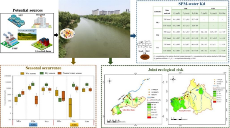 水环境中悬浮固体颗粒物(SPM)是负载抗生素的主要介质,显著影响其污染水平和暴露风险。针对抗生素在水-SPM间如何分配这一问题,研究团队以黄河下游和小清河干支流为对象,探究了四大类45种抗生素污染赋存及其与SPM结合特征。研究结果显示:人口密集和工业发达区域抗生素污染严重,其中喹诺酮类抗生素(FQs)浓度水平最高(~24.8μg/L),磺胺类抗生素(SAs)次之(~15.4μg/L),大环内酯类抗生素(MLs)检出频率均在90%以上,共存情况下可能会对生态环境造成较高的风险;SPM可强烈吸附FQs、SAs和MLs(分配系数Kd=4.2~6.6×104L/kg)从而影响抗生素在水环境中的时空分布,吸附结合能力与SPM理化性质和组成紧密相关。相关研究成果已被环境科学领域Top期刊Science of the Total Environment接收发表(DOI:10.1016/j.scitotenv.2022.158579)。
