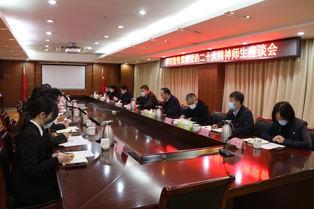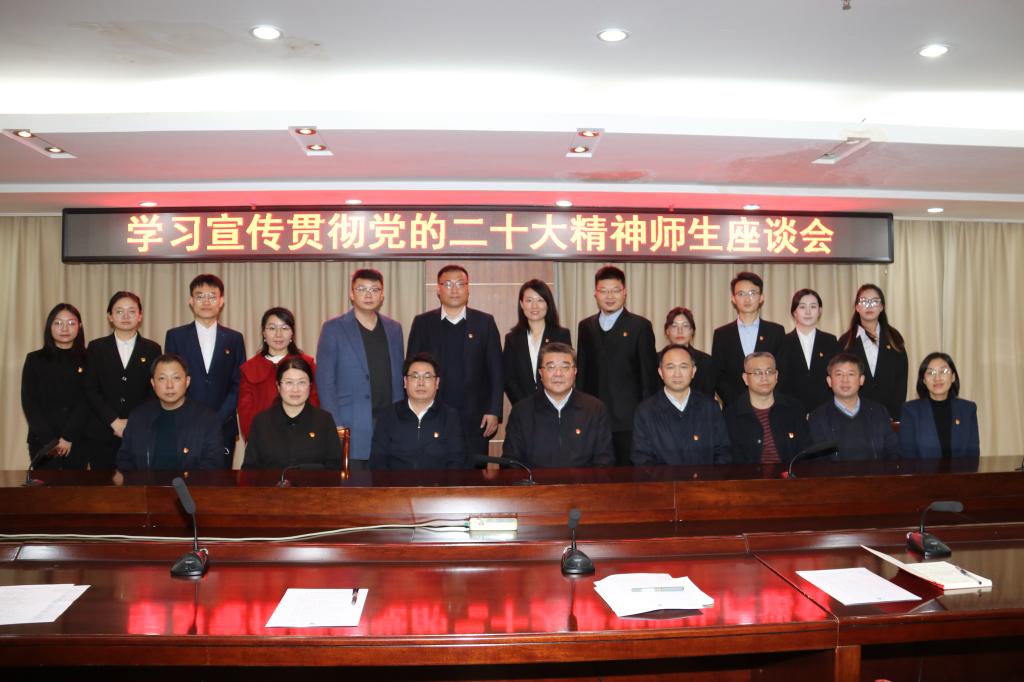 宣讲报告会后,王亚军与部分青年师生就学习宣传贯彻党的二十大精神进行了交流座谈。青年教师代表朱蕊蕊、杨霈宣、丁南、袁俊霞,学生代表王辰昊、秦芷琼、许贞武、王劲羽结合自己的思想学习和工作实际,交流了党的二十大精神学习心得体会。