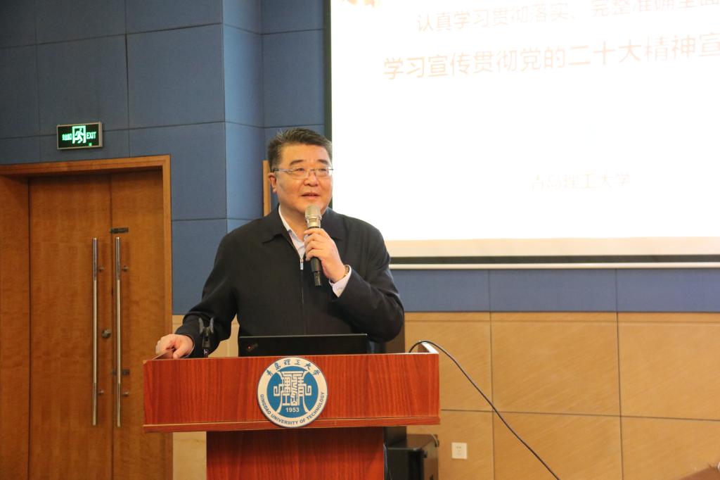 王亚军在宣讲中强调,学习宣传贯彻党的二十大精神,是学校当前和今后一个时期的首要政治任务。学习宣传贯彻党的二十大精神,要突出立德树人根本任务,做有温度的大思政工作,解决好师生身边的急难愁盼问题;要切实抓好师德师风建设,努力培养造就师德高尚、业务精湛、结构合理、充满活力的高素质教师队伍;要强化学院学科建设、科技创新能力,与推动内涵式高质量发展相结合;要深入贯彻科教兴国战略、人才强国战略、创新驱动发展战略,为强化国家战略科技力量、加快实现高水平科技自立自强作出贡献。