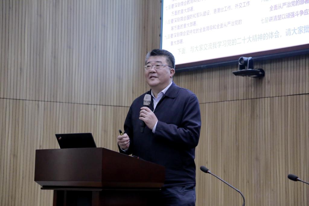 王亚军在开班式上结合自己的学习体会、联系学校工作实际,与参加专题学习班的同志进行了交流,作了专题辅导报告,并对参加专题学习班的学员提出了要求。一是切实提高政治站位。要从政治上充分认识学习宣传贯彻党的二十大精神的重大意义,感悟初心使命,坚定奋进信心,切实把思想统一到大会精神上来,把力量凝聚到大会确定的各项任务上来。二是切实弘扬优良学风。要珍惜机会、静下心来,原原本本、逐字逐句学习党的二十大报告和新修订的《党章》,全面系统学、深入思考学、联系实际学,深刻理解内涵,精准把握外延,真正在领会精神实质上见成效;要强化问题导向、目标导向、结果导向,紧密结合工作实际和思想实际,自觉对标对表,深入思考贯彻落实需要做什么、推动事业发展下一步要怎么办,真正在理清工作思路上见成效,真正在推动学习成果转化上见实效。三是切实严守学习纪律和规定。(撰稿:王妍、马馨甜、王云霞;摄影:马馨甜、任衍珍;审核:钱均)