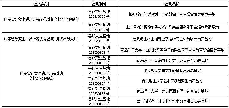 近日,山东省教育厅发布了《关于公布山东省研究生联合培养基地考核验收结果的通知》,学校9个山东省研究生联合培养基地全部通过考核验收,其中2个获评山东省研究生联合培养示范基地、1个获评山东省研究生联合培养优秀基地、6个获评山东省研究生联合培养基地。