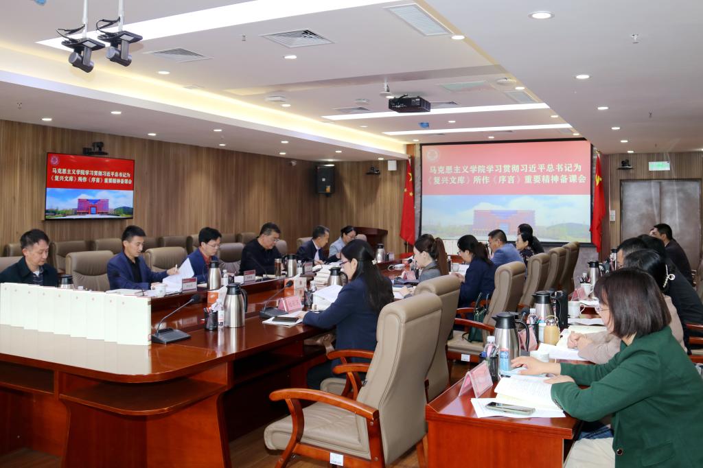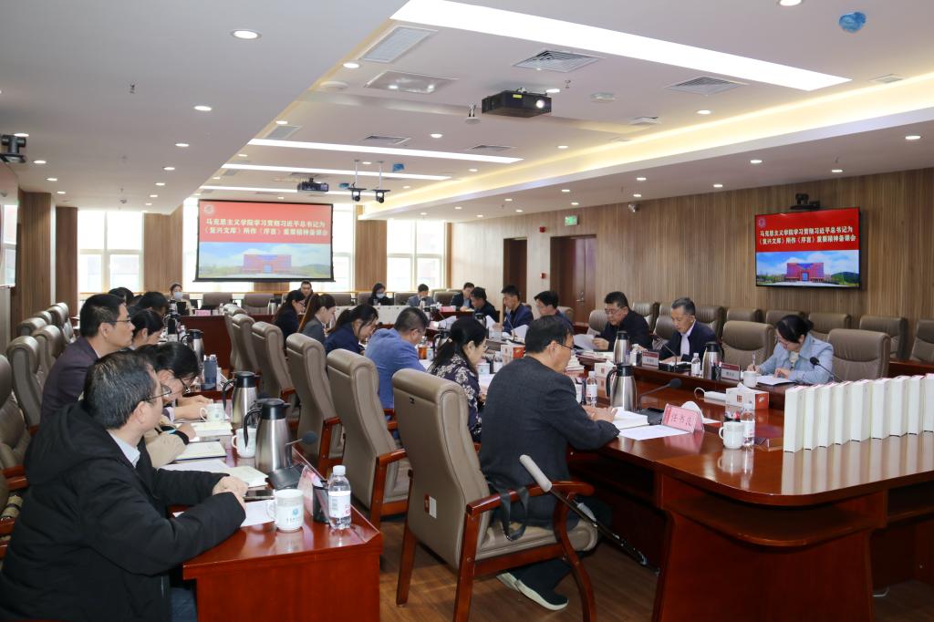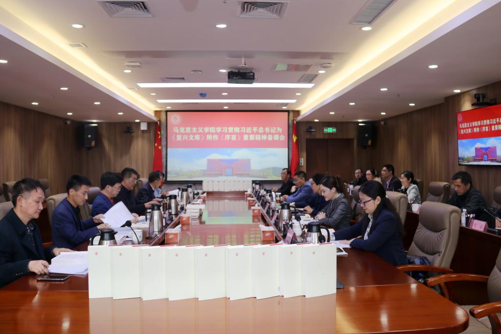 4月19日下午,学习贯彻习近平总书记为《复兴文库》所作《序言》重要精神备课会在综合服务楼305会议室举行。党委书记王亚军出席并讲话,马克思主义学院领导班子成员、教研室主任和教师代表参加此次备课会。