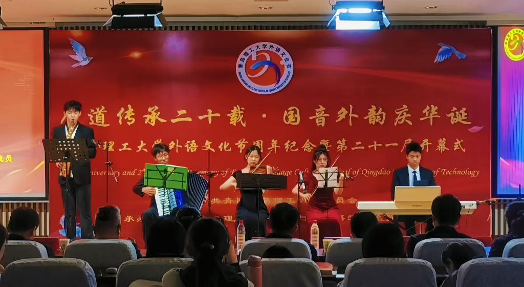4月26日,青岛理工大学外语文化节周年纪念暨第二十一届开幕式在嘉陵江路校区主教学楼一楼东报告厅隆重举行。党委常委、组织部部长郭建锋出席活动并致辞,教务处、学生工作处、国际交流处、校团委相关负责同志、人文与外国语学院党政领导班子成员以及200余名师生参加开幕式。